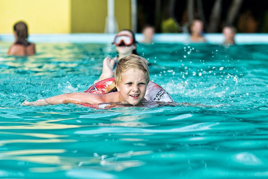 A fürdőben egy átúszható, 190 négyzetméter vízfelületű, 90 cm mélységű, 34-36 fokos termálvizes medence várja a vendégeket.