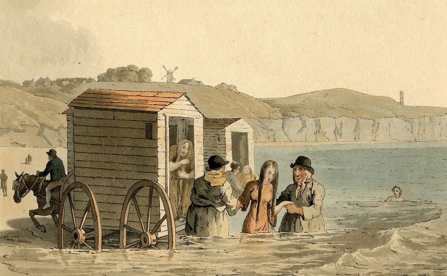 A fürdőgépek használatával történő fürdőzés hosszadalmas és mai szemmel vicces procedúra volt. Az erkölcsös hölgyek és urak utcai viseletüket ezekben a kerekes bődékban cserélték testüket nagy felületen takaró, kezeslábas fürdőruháikra. Ezután elindult a lovak vagy ökrök által vontatott, vagy a személyzet által tolt kocsikaraván a víz felé, ahol már a fürkésző tekintetek elől elrejtve csusszanhattak a vízbe.