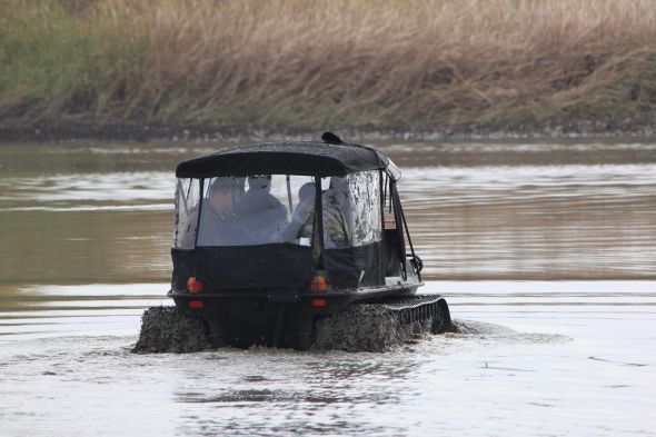 A kétéltűt ezen a hétvégén próbálhatják ki először a látogatók aTisza-tavi Ökocentrumban, a továbbiakban innen és a Tisza Balneum Hotelból indulnak majd a túrák különböző útvonalakon, előzetes bejelentkezéssel, időtartamuk a 30 percestől a 3 órásig terjed. A jármű utánfutóval bővítve egyszerre 5?9 személyt képes szállítani, a program ára alig haladja meg a csónaktúrák árszintjét.