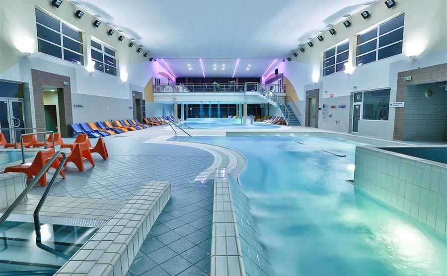 Az egyik a medence-csarnok, ahol egy rekreációs medencében élvezhetjük a fürdő által kínált különféle vízi attrakciókat. Az itt található, vízmasszázs fúvókákkal és pezsgőfürdővel kiegészített medence hőmérséklete 32 fok, de tartozik hozzá egy kiúszó rész is, amely a kültéri fürdőbe vezet.