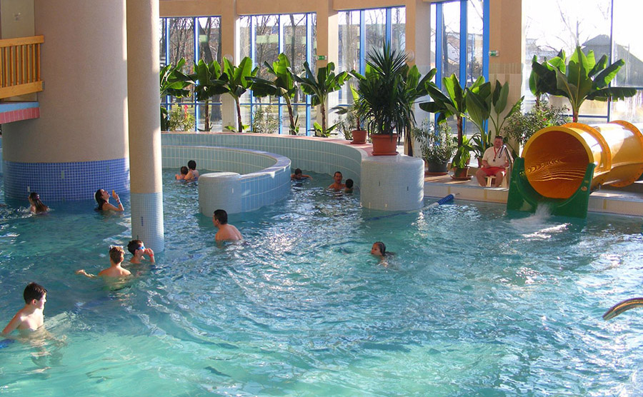 Az önkormányzat tulajdonában lévő fürdőben már korábban zajlott létesítménykorszerűsítések során elkészült egy egészségügyi centrum, egy élménymedence, egy tanmedence, egy párját ritkító ponyvacsúszda, valamint egy vízforgató rendszer. A létesítmény legújabb beruházását a 2008-ban elnyert uniós pályázati támogatásnak köszönheti a település, ennek során megépült egy összesen 943 négyzetméter vízfelületű gyógymedencerendszer, s a fürdőben a fedett terület nagysága immár megközelíti a kétezer négyzetmétert. A háromszintes épület alagsorában 1200 személyes öltöző, 300 négyzetméteres fitneszterem, valamint a gépészeti berendezések kaptak helyet. A földszinti fürdőtér két gyógy-, egy-egy gyermek-, élmény- és tanmedencével, valamint egy jacuzzival rendelkezik. A felső szinten nyugágyas pihenő és vendéglátó egység szolgálja a fürdőzőket.