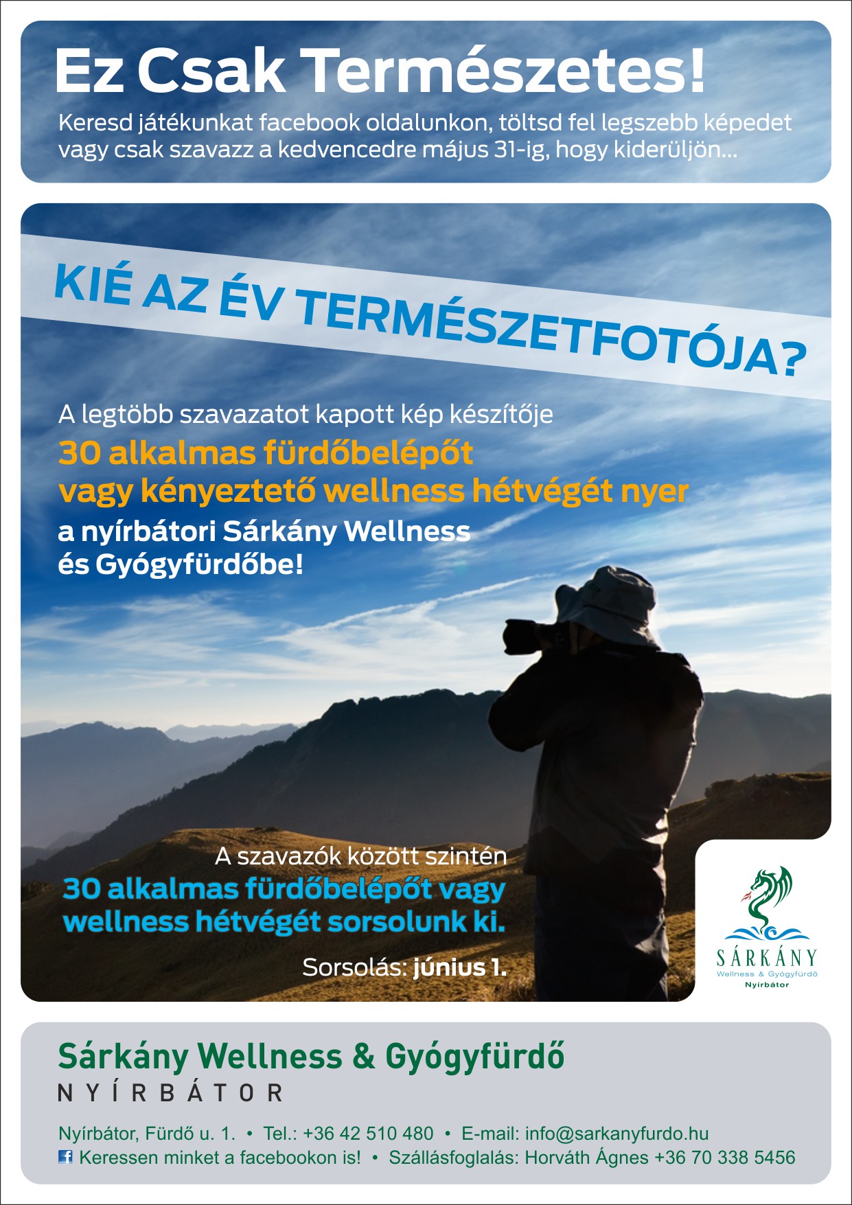Ha kiválasztotta a fotót, töltse fel bátran minél hamarabb a nyírbátori Sárkány Wellness és Gyógyfürdő facebook oldalán lévő Ez Csak Természetes nevű játékba!