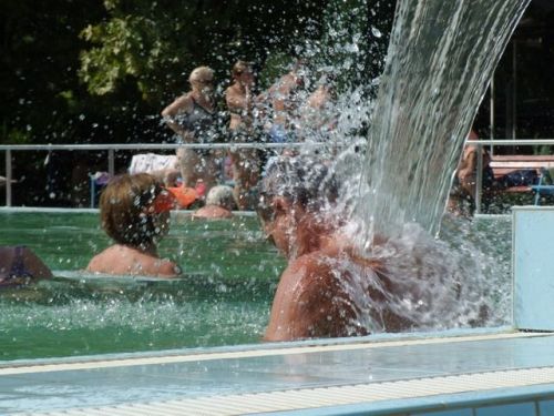 Termálmedencékben azonban valami más a jellemző! Sokkal gyakoribb az a fajta nyakzuhany, mely a vízfelszíntől csupán harminc-negyven centiméterről érkezik, és kevésbé erős sugárban. Mondjuk is inkább csobogónak. Ez folyamatosan ömlik, egyenletes, laza sugárban, és egészen más élményt kínál. Alapfunkciója nem élményelem, ezekkel a forró beömlőkkel a termálmedencék állandó hőmérsékletét biztosítják. Emellett esztétikai hatást is keltenek látvány-, és hangulatvilágukkal, csobogásukkal. Üljünk be ezek alá a termál csobogók alá is, és figyeljük meg a kettő közötti különbséget! Míg a nyakzuhany testünket dolgozza meg alaposan, a csobogó elsősorban a pszichénkre hat. Széles sugárban, közelről áramlik nyakunkra, fejünkre a forró hévíz, közben meghitt relaxációra alkalmas légkört teremt! Éljünk vele!