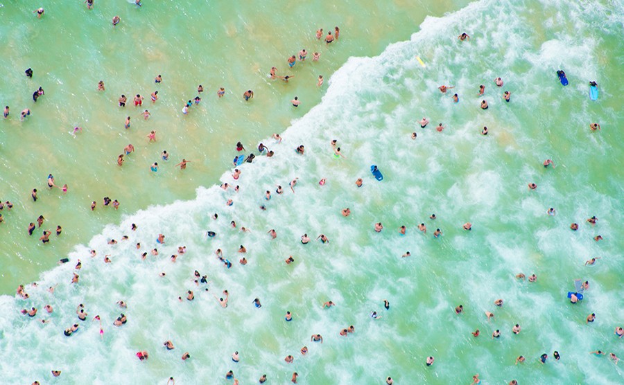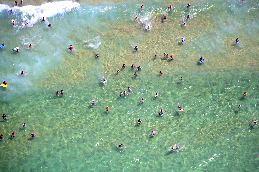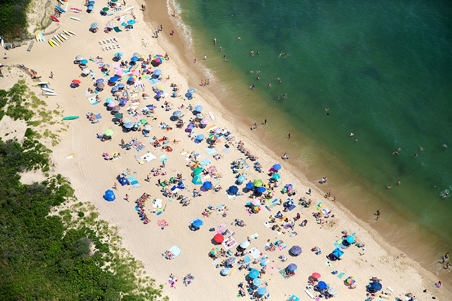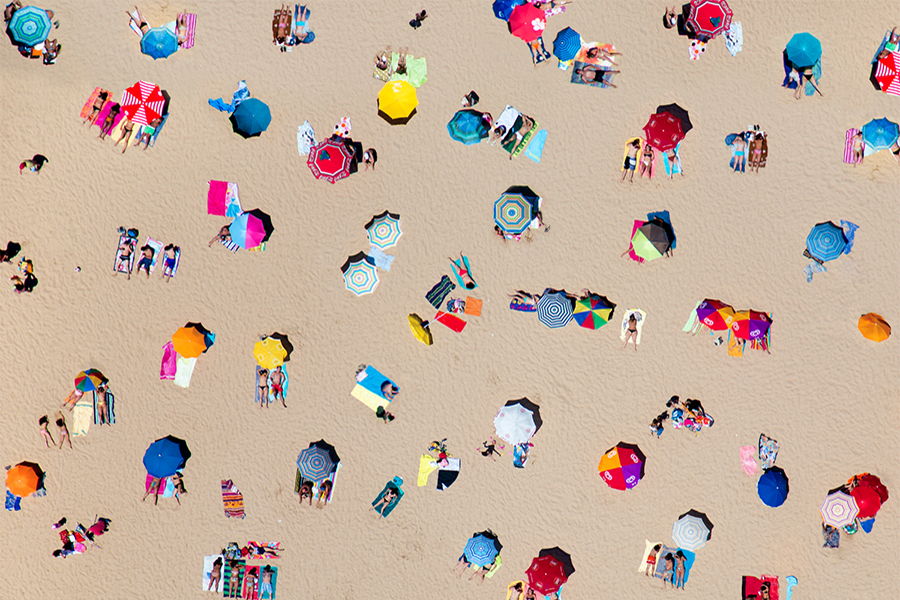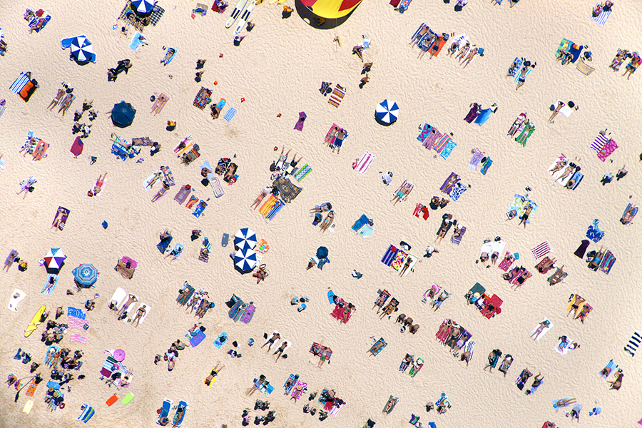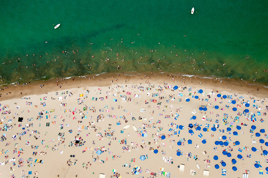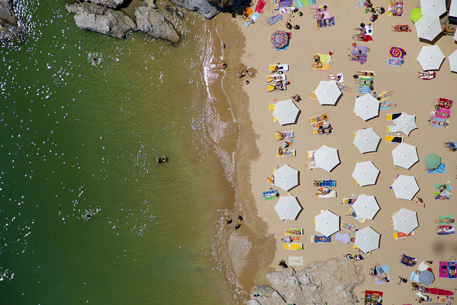 Gray Malin helikopterből készült felvételein a világ legszebb partjain fürdőző embereket örökítette meg.