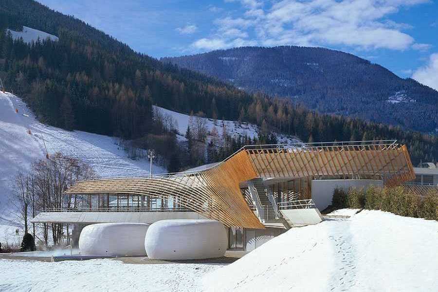A síelés szerelmeseinek nagy kedvence Längenfeld, egy kedves tiroli falucska, ahonnan könnyen megközelíthetők Tirol kedvelt síközpontjai. Nevezetessége, hogy itt található a tiroli tartomány egyetlen termálfürdője, az egyedi építészeti megoldásokkal tervezett Aqua Dome. Hatalmas fenyőfák és havas hegycsúcsok között, mintegy 1200 méteres tengerszint feletti magasságban található az egyedi tervezésű fürdő központ, ahol igazán jól esik a pihenés egy sportos nap végén. A mesés környezet már önmagában is hihetetlen élmény, de mellette a 2200 négyzetméteren kialakított fürdőkomplexum minden lehetséges módon kényezteti a pihenni vágyó látogatókat. A különleges, üvegfalú épületen különösen érdekesek a kültéri medencék lábra állított kehely formájú medencéi, amelyek afféle stilizált fagylalttölcsérekként állnak a hegyek között.