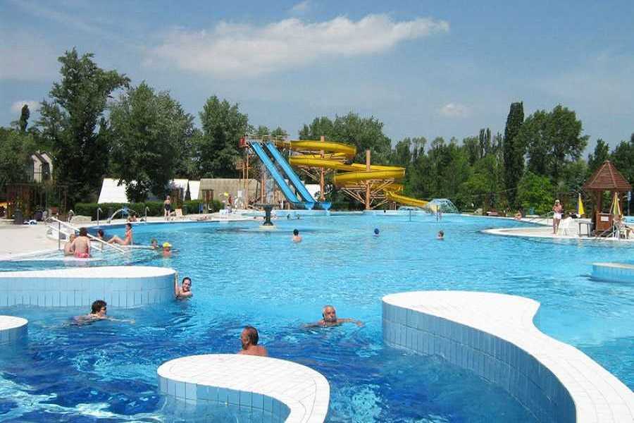 A hangulatos, parkosított környezetben fekvő fürdőben egy termál-, egy gyermek-, egy strand- és egy élménymedencében lehet felfrissülni. Sőt még három csúszda és egy futballpálya is van. 2013 óta már télen is használhatjuk a strand fűtött medencéjét.