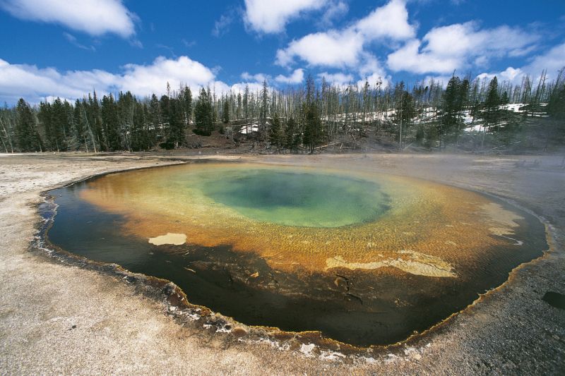 Most sárga, kék, zöld és vörös színekben pompáznak a Yellowstone Nemzeti Park termálvizes medencéi, de egy matematikai modell szerint nem volt ez mindig így.