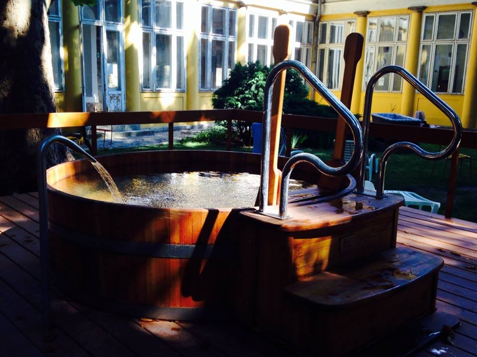 A tizenkilencedik században épült vízgyógyintézet belső udvarán álló két hatalmas juharfa alatt eddig is kellemes élmény volt ejtőzni. Ezzel a kis termál dézsával még eredetibb élményben lehet részünk.