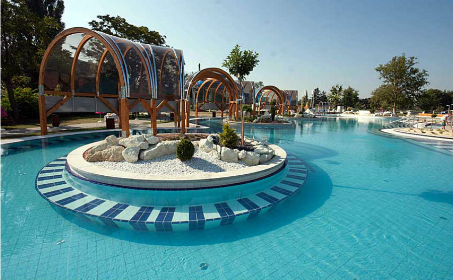 A projekt keretében - zömmel uniós forrásból - megépül egy 5 egységből álló termálvizes, feszített víztükrű, vízvisszaforgató-szűrő rendszerű, összesen 1728 négyzetméter vízfelületű medencecsoport.