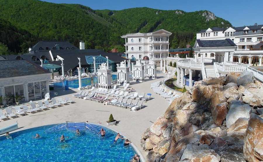 Kíváncsi rá, milyen lehet a klasszikus uralkodói megjelenés és 21. századi technológia egy helyen? Egy kellemes, királyi eleganciát sugárzó fürdőt találtunk a napsütötte dombok között a szlovákiai Rajecfürdő településen.