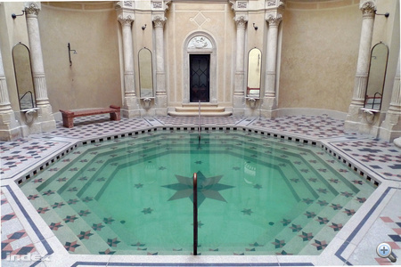 Egy valamikori tipikus törökfürdőbe belépve a látogató a kupolával fedett előcsarnokban találja magát, ahol egy ornamentikus díszítésű márványkút körül helyezkednek el az öltözők. A középső terem leginkább pihenésre, relaxációra szolgál. Innen lép a látogató a Hararetbe, amely a fürdő legfontosabb és egyben legforróbb, legnedvesebb helyisége.