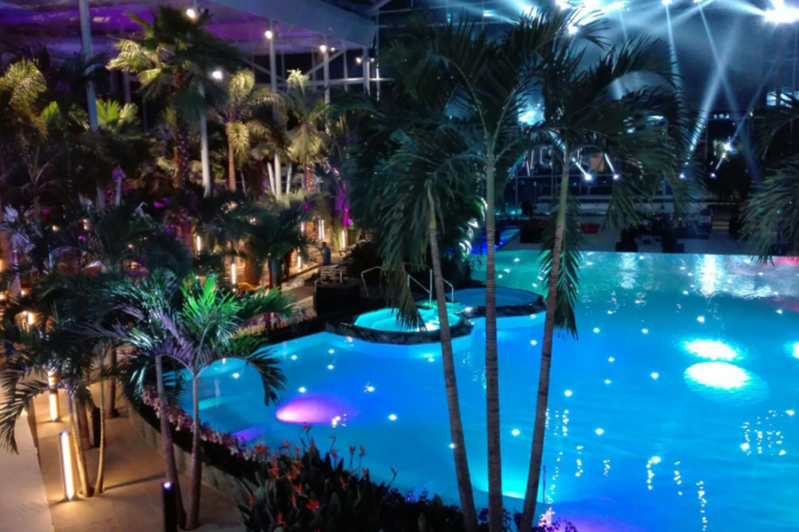 A létesítmény egyik különlegessége a medence-hálózatot körülvevő, több mint 800 ezer trópusi növényt tartalmazó, 180 ezer négyzetméternyi botanikus kert. A wellnes-övezetben hat "tematikus" szauna, a családi szektorban pedig hullámmedence és másfél kilométernyi csúszda-rendszer várja a vendégeket. A beléptetést és a különböző szolgáltatások igénybevételét számítógépes rendszer segíti az érkezéskor kapott karkötők kódjának leolvasása alapján.