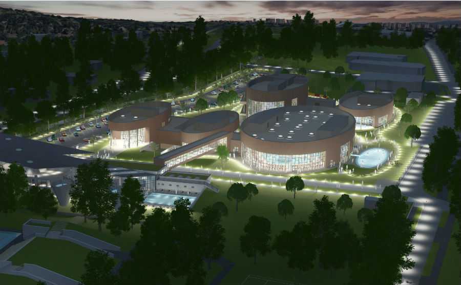 A polgármester tájékoztatása szerint a „futurisztikus fürdőkomplexumba” nyolc beltéri és két kültéri medencét terveznek, az új létesítmény "szerves egységet alkot majd" a strandfürdő 2015-ben átadott első ütemével.