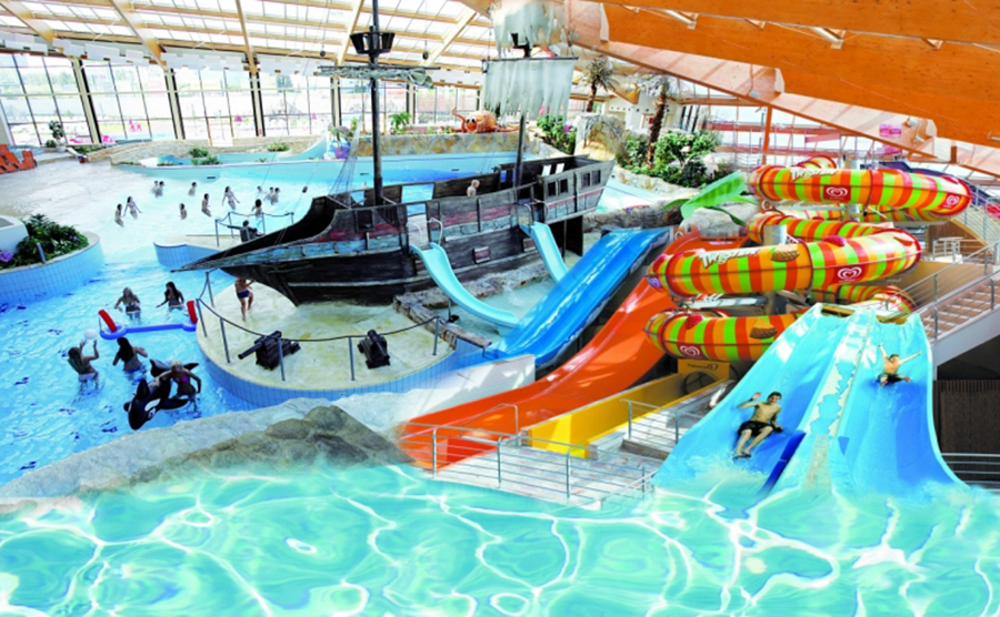 A fürdő vízi világában tényleg minden ott van, amiről álmodtunk. Három vízi palota és egy kültéri medencerendszer kínál összesen 9 csúszdát, egyedülálló 8 méter mély búvárárkot és egy hajóronccsal kiegészített vízi játszóteret a legkisebbeknek. A csúszdák hossza összesen 140 méter, van közöttük sötét, kivilágított és az élményt hangeffektekkel fokozó változat. A kényelmet kedvelőknek lassú és gyors „folyók”, pezsgőfürdők, masszázspadok és egy csodás tengeri akváriummal díszített pihenőtér kínál lehetőséget a lazulásra.