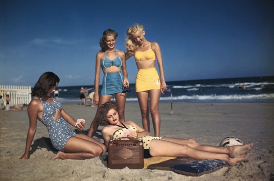 A hetvenes években a körte alkatú nő az etalon, vagyis nagyobb szerep jut a bikini megjelenésével megmutatkozó csípőnek. A nő mint zsákmány jelenik meg a magazinok címoldalán. Szexualitása már nem tabu többé. Nyomban el is kezdik riszálni a feneküket, és kihangsúlyozzák idomaikat, például a bikini felsőbe helyezett párnácskával. A fürdőruhákban megjelennek a figyelemfelkeltő díszek, elsősorban a fodor, de a nagy karika is trendi. Divatba jönnek a horgolt cuccok. A pánt nélküli bikini felső a menő. Színes, díszes, könnyű kis leplek, ruhák is kerülnek a bikini fölé strandolás után. A korszak emblémái a Charlie angyalai. Ma is követik ezt a stílust, például Rihanna, vagy Jennifer Lopez.