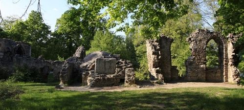 A parkban több műromot építettek a 12. század elején emelt vértesszentkereszti apátság maradványainak felhasználásával, de a falakban egy harmadik századi római kori sírkő is látható.