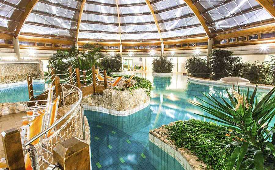 Az egész évben nyitva tartó fedett élményfürdő híres különleges szaunavilágáról, ahol olyan szaunákat próbálhatunk ki, amelyeket az országban máshol nem. Fürdőrészlegén az élménymedencében a sodrófolyosó, a pezsgőágyak, a pezsgőmedence, a félig fedett, gyógy- és ivóvízzel feltöltött négy medencéből álló medencecsoport kellemes kikapcsolódásról gondoskodnak. Összesen 14 fedett és 5 nyitott medencéből választhatunk Bükfürdőn kora tavasszal is, melyek közül kipróbálhatunk jakuzzikat, gyerek-, gyógy-, torna-, merülő-, súlyfürdő medencéket.
