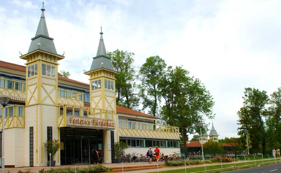 Nyitóképen: a Festetich Fürőház nyári bejárata.