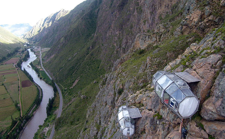 Peru Cuzco nevű Szent völgyében a hegy oldalára üveg alvókapszulákat telepítettek kifejezetten az extravagáns szállásoktól nem riadó hegymászóknak. Hétköznapi ember nem botlik beléjük ugyanis, hiszen csak úgy lehet őket megközelíteni, hogyha 122 métert mászik, vagy felülről ereszkedik alá az utazó.
