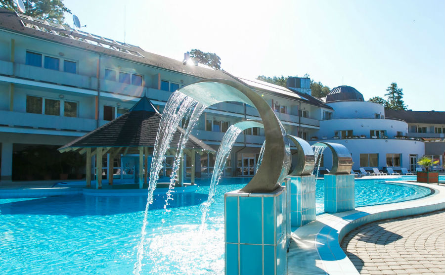A hotel utalt arra, hogy a fürdő forrását szénbányászati próbafúrások során találták 1928-ban. A felszínre törő alkalikus, lítium tartalmú hévízzel már néhány évvel később gyomor- és bélpanaszokat kúráltak, de már akkor javasolták vele anyagcserével kapcsolatos problémák, ízületi bántalmak, bőrbetegségek és nőgyógyászati megbetegedések kezelését is.