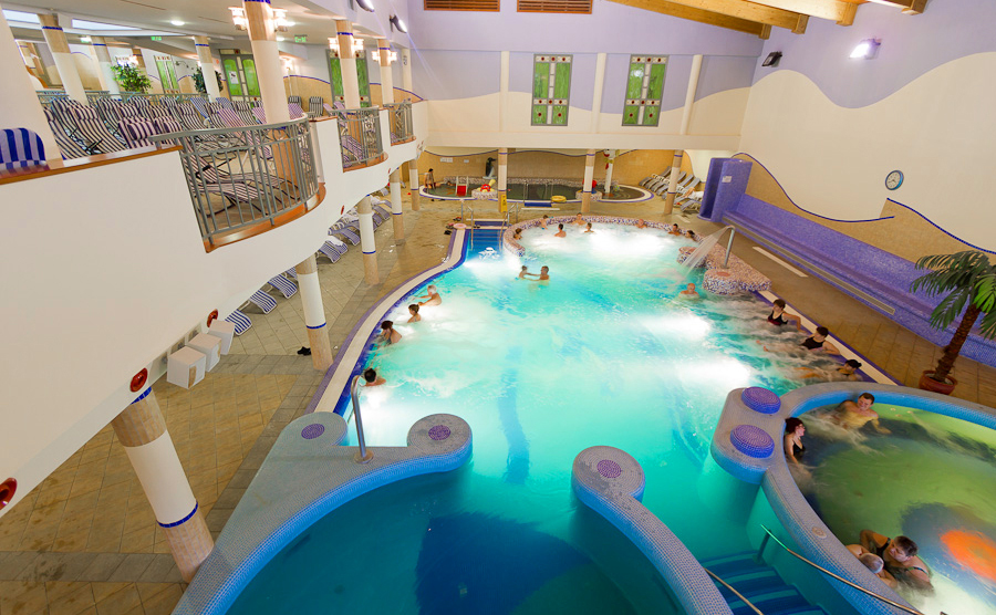 Óriási vízi birodalomban, egyedülállóan 4.000 m2 –en úszómedence, termálmedence, élménymedencék, gyermekmedence, játszótér, jégbarlang, szauna sziget, kondicionáló- és fitness terem, csoportos szárazföldi- és vízi tornák várják a feltöltődni vágyó vendégeket.