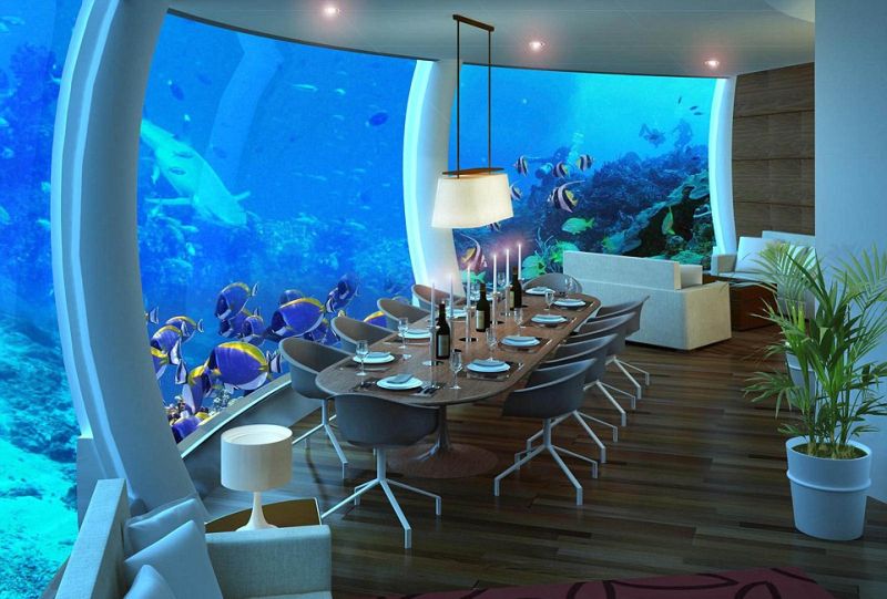 A hotel - amit lifttel lehet majd megközelíteni a szigetről - elképesztő luxust kínál: minden lakosztályban hatalmas jakuzzi és mennyezetig érő ablakok lesznek. A szobák külső felületének 70 százaléka átlátszó akrilból készül, vagyis panorámást kilátást nyújtanak a tengeri világra, továbbá mindben lesz víz alatti világítás, melyet egy belső kapcsolóval irányíthatnak a vendégek, és egy külső hal etető is, ami garantálja, hogy bepillanthassanak a tengeri élővilág rejtelmeibe.