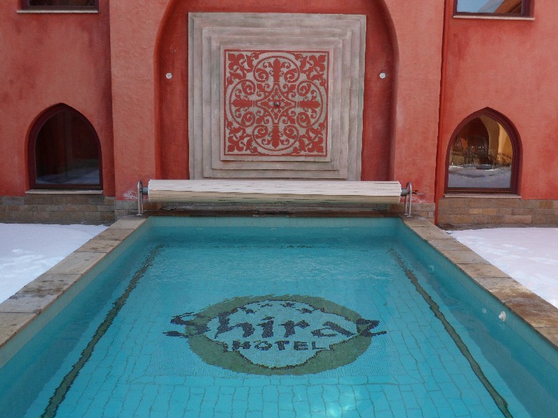 A Shiraz wellness része egy igazi mór fürdőház. Hangulatos kupolás termeivel, élménymedencével várja a pihenni vágyókat. Szaunák, gőzkamrák, aromakamra, pihenőszoba, minden ami a lazításhoz szükséges. Pontosabban egy valami nem elég. Nagyon kevés, mindössze négy napozóágyon lehet kipihenni a szaunázás fáradalmait. Persze nyáron a belső, Arab udvarban körbeveszik a medencét az ágyak - no végre találtunk egy kis hibát a Shiraz csoport szállodáiban. Itt is van egy fantasztikus szauna szeánsz, mely a sós-mézes nevet viseli. Az első szakaszban sóval bedörzsöljük testünket, majd rövid zuhany után a mézzel kenjük be magunkat. Érdemes megkóstolni is, mert fantasztikus íze van!