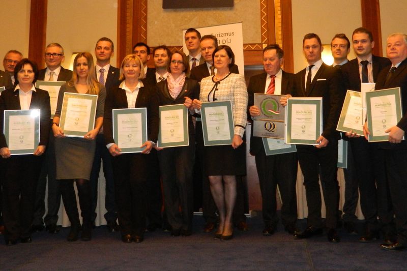 2014-ben 31 szolgáltató - 21 szálláshely és 10 vendéglátóhely - érdemelte ki a Magyar Turizmus Minőségi Díjat, melyet ünnepélyes keretek között vehettek át január 27-én a Hiltonban Glattfelder Bélától, az NGM gazdaságszabályozásért felelős államtitkárától és dr. Faragó Pétertől, a Magyar Turizmus Zrt. vezérigazgatójától. Jelenleg összesen 84 szálloda és 19 étterem, összesen 103 szolgáltató bejáratánál láthatjuk a díjazottaknak járó táblát és oklevelet.