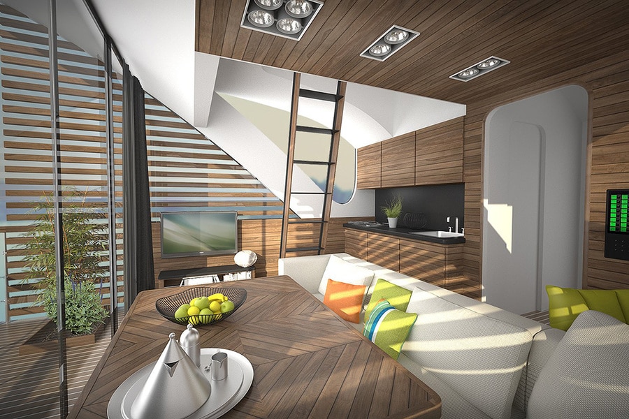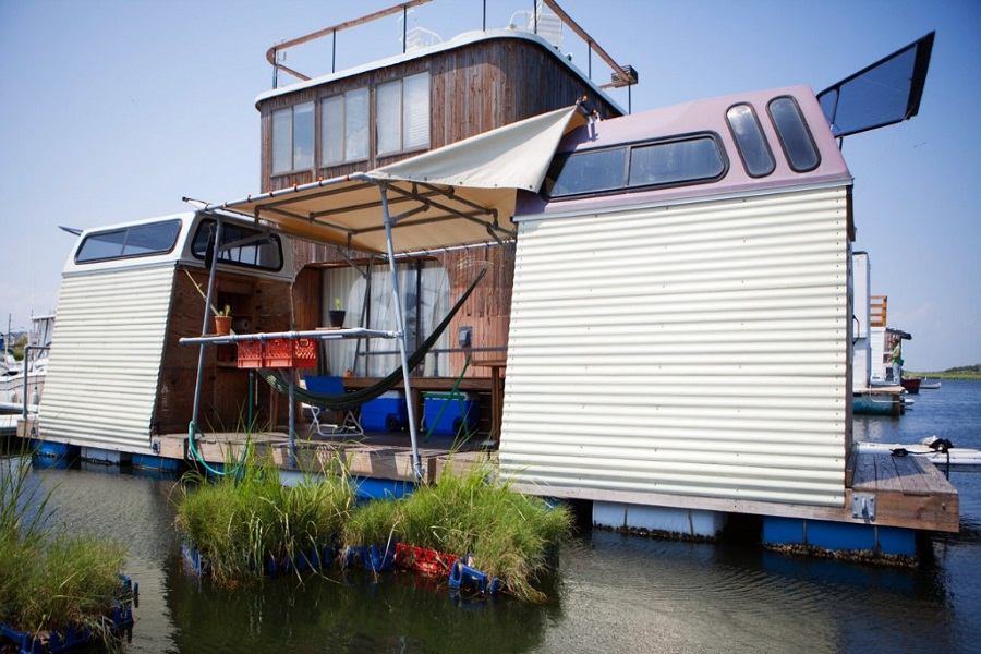 Egy milliárdos saját szigetén létesítette ezt az úszó hotel komplexumot, amelynek egyetlen központi egysége van - étteremmel, kávézóval, rendezvényteremmel és természetesen a recepcióval. Ehhez a központi egységhez csatlakozik több úszó apartman, amelyekkel aztán szabadon lehet úszkálni a tavon. Ezek a kis kapszulák is minden kényelmet biztosítanak: van bennük egy nagy nappali, szalon, galéria, fürdőszobák, hálószobák és egy mérsékelten árnyékolt terasz, ami nem más, mint a hajó vagy inkább yacht fedélzete.