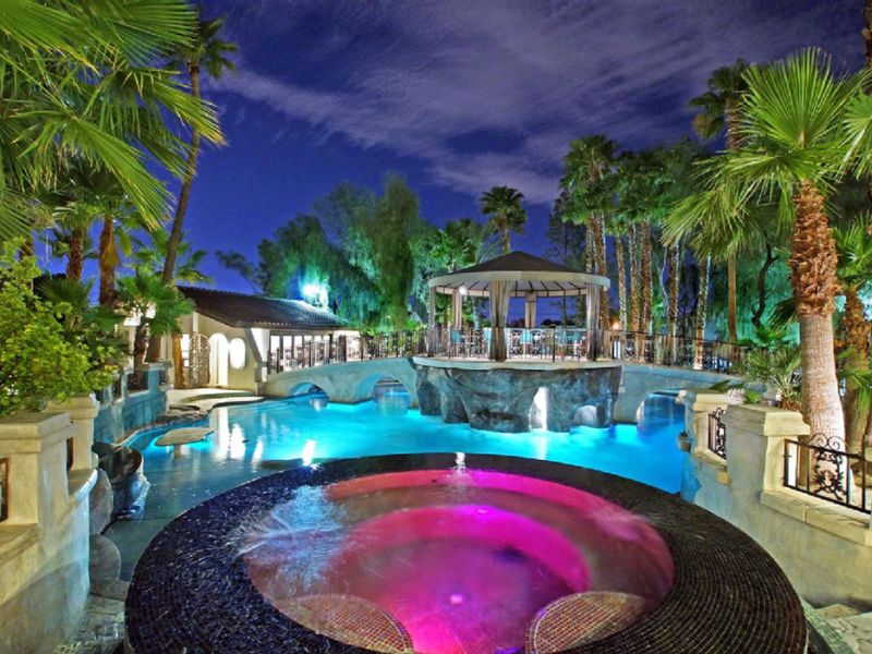 Ugyan miért osztoznánk más vegasi fürdőzőkkel, ha saját vízi parkunk is lehet egy hatalmas villával? Még egy igazi homokos strand is dukál mellé nem kevesebb mint száz pálmafával szegélyezve és persze egy játékterem. 2500 dollár egy éjszakára.