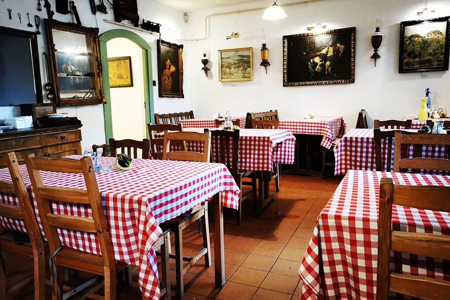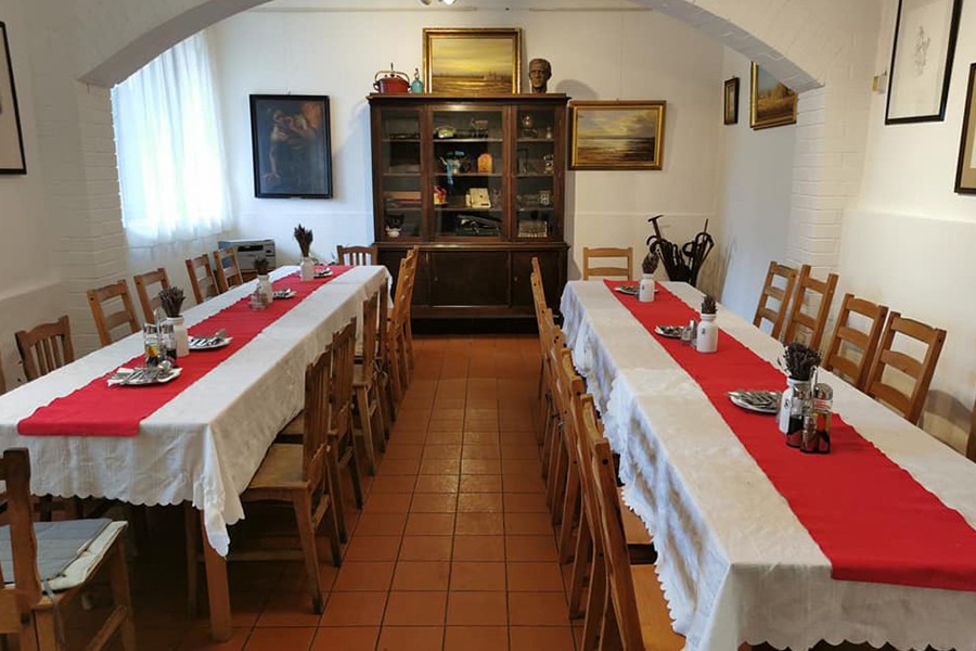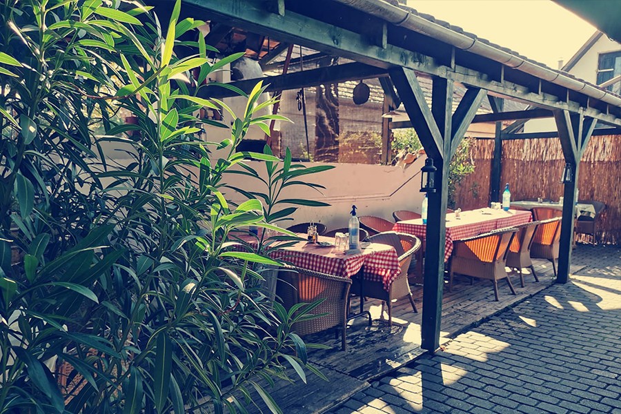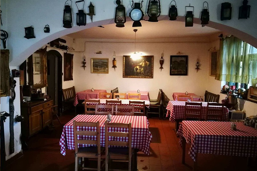 Az étterem belső két termében 30-30 fő fér el kényelmesen. A tavasztól őszig nyitva tartó fedett kerthelyiség további 30-40 fő részére nyújt felüdülést. A ház belső és külső falait díszítő régiségek, a kockásterítős asztalok igazi békebeli hangulatot árasztanak. A kínálatot búbos kemencében sült ételek színesítik.