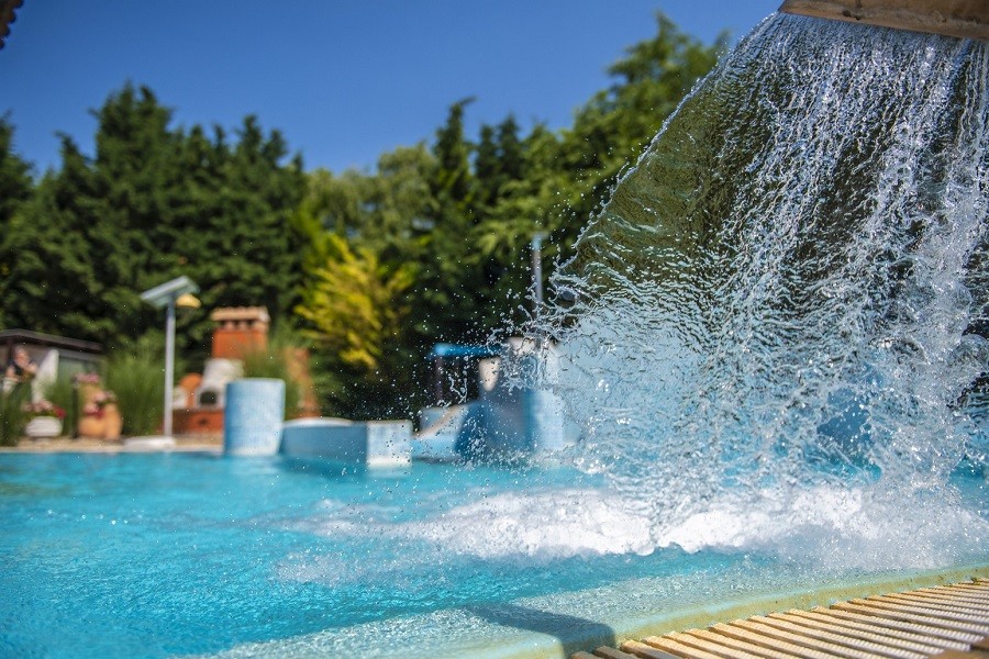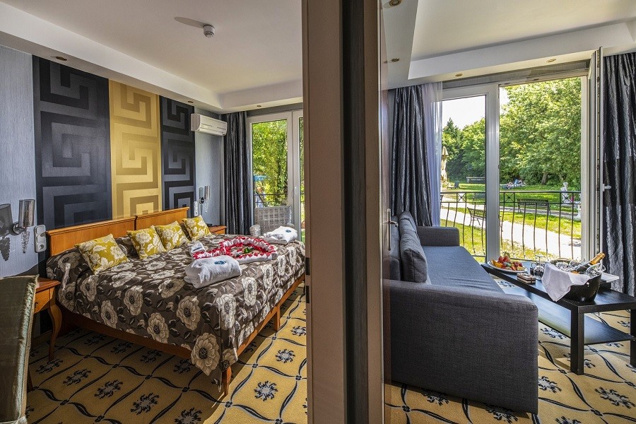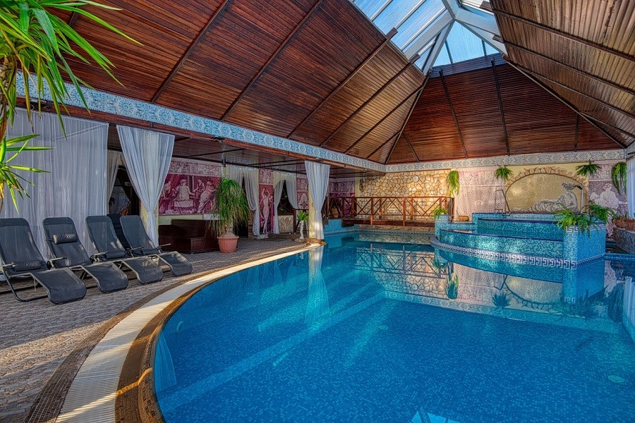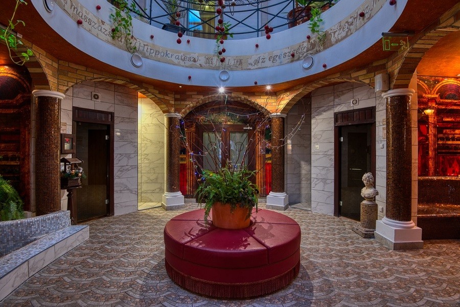 A felnőttbarát hotel szíve, az antik római mintára épült wellness birodalom sok kényelmi, relaxáló szolgáltatást és különlegességet tartogat azoknak, akik a hagyományos wellnessnél izgalmasabb és különlegesebb élményre vágynak. A beltéri wellness részlegen számos szolgáltatást lehet igénybe venni: úszómedence, pezsgőfürdő, sudatorium, szaunák, sópihenő, élményzuhany, Kneipp-taposó és fűtött mozaikpadok. A kültéri wellness szigeten ezen felül vízibár, jakuzzi, látványmedence és napozó pavilonok várják a vendégeket.