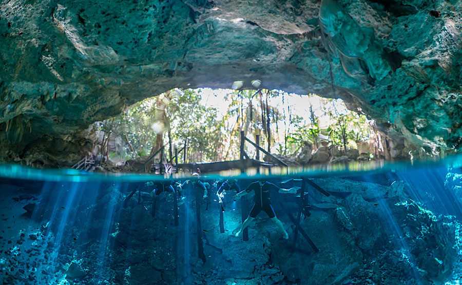 A Mexikóban, Yucatanban található Cenote Dos Ojos, az egyetlen barlangrendszer, amely egyedülálló, víz alatti bejárattal rendelkezik, és különleges élményt kínál búvárkodás szerelmeseinek. A víz alatti barlangok a mészkő barlangok mennyezetének összeomlása után keletkeztek. Az árkok és mélyedések felfogják az esővizet, amelyek tovább folyva a csatornákban összekötik a szárazföldet az óriási barlangi labirintusokkal" A búvároknak kísérő segítségével lehetősége nyílik arra, hogy felfedezzék a víz alatti 35 méteres barlangokat.