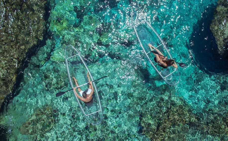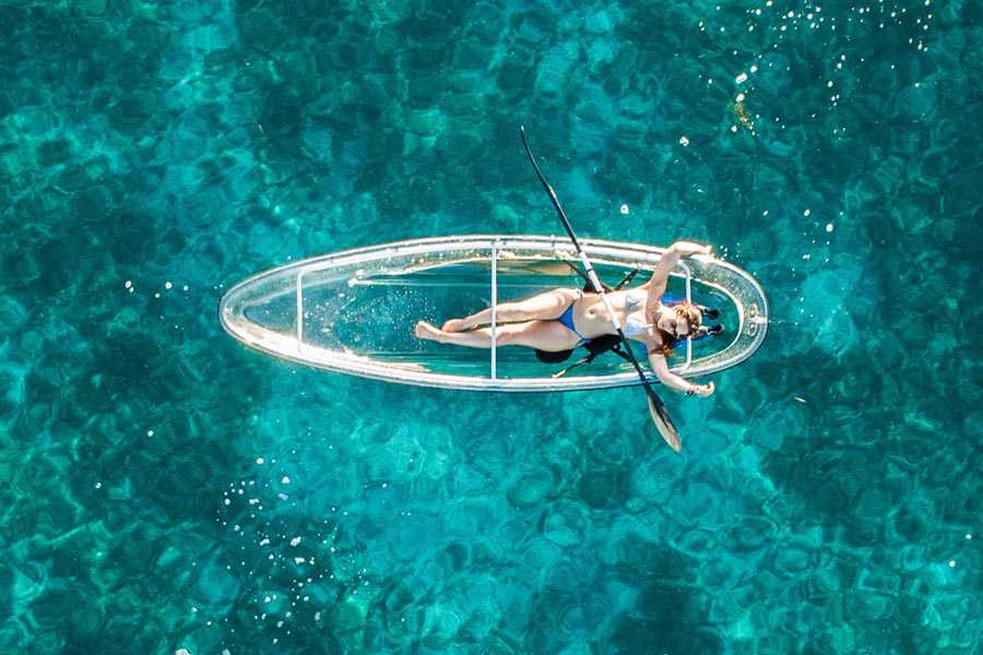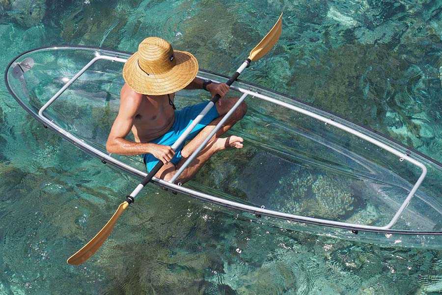 Az átlátszó kajakozás olyanok számára is lehetőséget biztosít a tengeri világgal való megismerkedésre, akik csak a víz felszínén cirkálva szeretnék megfigyelni, hogy mi van a mélyben. A kajakkal nem is kell olyan messzire evezni, hiszen már a partközeli részeken is gyönyörű látványt nyújt a víz alatti sziklák közötti pezsgő élet, és a színes korallok világa.