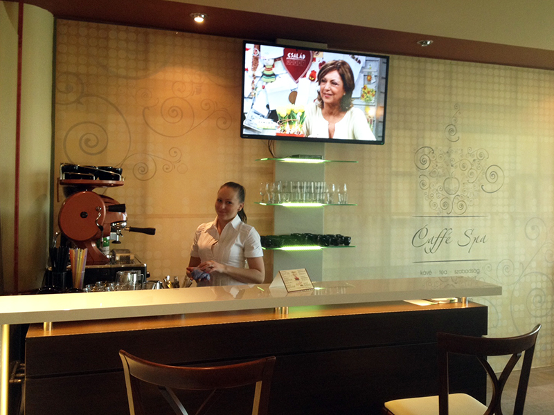 A Karos Spa-ban áprilistól már a hallban kialakított új kávézóban, a Caffé Spa-ban élvezhetik a vendégek a reggeli kávé zamatát, ahol a város dalos madarai is vendégüket teszik és zenéjükkel varázsolják felejthetetlenné a Forza kávékülönlegességek nyújtotta élvezetet. Kellemes színvilág, mosolygós személyzet, és az olasz kávé zamata egy helyen; a Caffé Spa-ban.