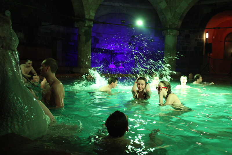 Különleges hangulatú éjszakai fürdőzés a Barlangfürdőben. Minden hónap második szombatján, 19 és 23 óra között várják az érdeklődőket. Ezen kívül Szauna szeánsz minden hétvégén Szaunaszeánsszal csábítják az érdeklődőket. A Barlangfürdő ugyan már önmagában különleges, szolgáltatásai azonban valóban egyedülállóak. A komplexum területén Fürdőkönyvtár üzemel, ahonnan bárki térítésmentesen kikölcsönözheti kedvenc olvasnivalóját.