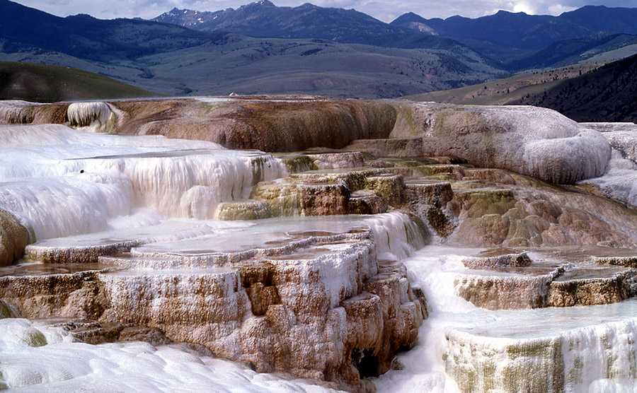 A Mammoth Hot Springs látványos mészkő teraszait a felszín alatti gázok és a víz keveredéséből kialakuló savas oldatnak köszönhetjük. Ahogy ez a savas oldat a felszín felé törekszik, útja során feloldja a mészkövet.