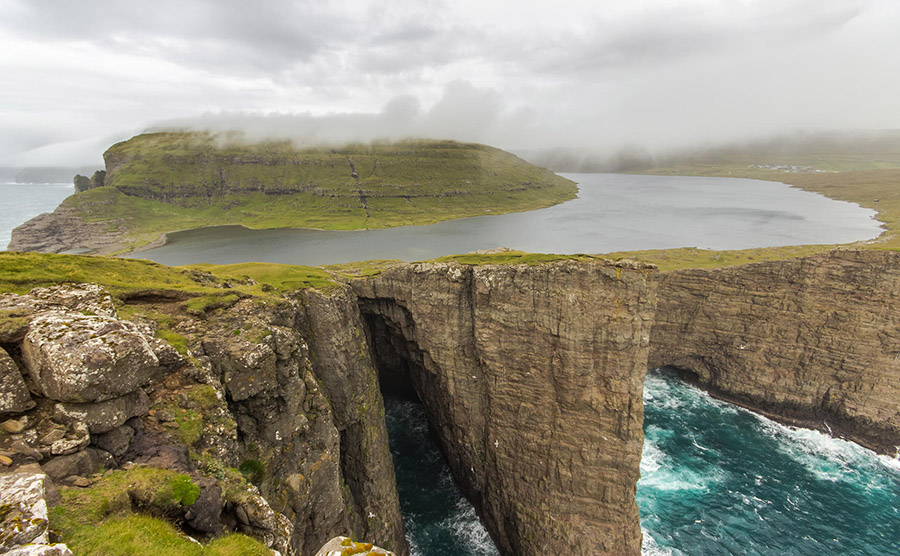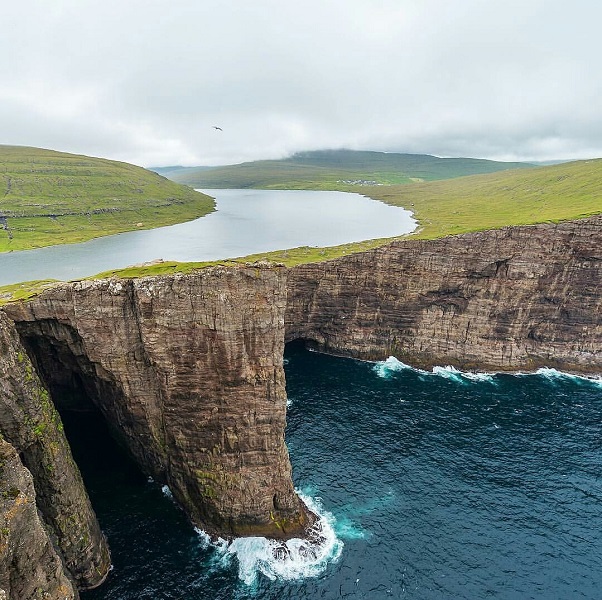 A Sørvágsvatn-tó, vagy más néven Leitisvatn a Feröer-szigetek legnagyobb tava egészen csodás látványt nyújt, hiszen 32 méter magasságban fekszik az óceán felett.