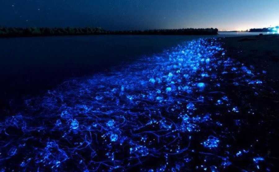 Az apró élőlények a nagy hullámzások következtében csapódnak a partra nagyobb mennyiségben, az erőteljes sodrás miatt, foszforeszkálófényt bocsátanak ki magukból és kéken csillognak a vízben vagy a part menti homokban.