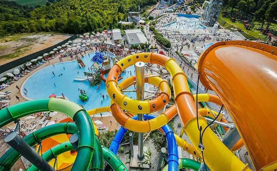 A horvát tengerpart első vízi vidámparkja a 80.000 m2-es területen elhelyezkedő Istralandia, Novigrad és Brtonigla között, összesen 1.6 km hosszúságban, 20 csúszda várja a száguldást kedvelőket. A legfélelmetesebb talán a 96 m hosszú "szabadesés", melyen 27 m magasságból csúszhatunk lefelé. A kevésbé veszélyes, de a kicsik számára annál szórakoztatóbb "mini szörf" gyerekcsúszdát négy, egymás mellett elhelyezett lesiklópálya alkotja. A legújabb, Black kamikaze zárt csúszdán átélhetjük csúszás vadonatúj dimenzióját. Vannak még párhuzamos, gyors és fényeffektekkel színesített zárt csúszdák, de akár együtt is „hajókázhat” a család a négy személyes raftingon. A nagy kedvenc viszont biztosan az „Égi folyó” elnevezésű, 157 m hosszú csúszda lesz, amelyről ráadásul fantasztikus panoráma nyílik a parkra. Hullámmedence, vízi kastély, kétszintes hidromasszázs medence, vízi játszótér is színesíti élményeinket.