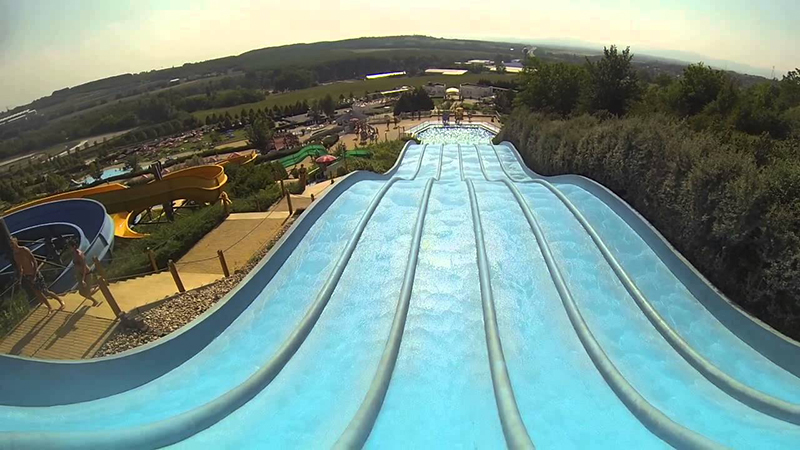 Az Aquapark a 12 méter magas indítótornyából kilenc különféle pálya indul, a vízi kalandok kedvelői számára a négypályás versenycsúszda, a kétféle kamikáze, az óriás csavarcsúszda, a "fekete lyuk", és az "őrült folyó" garantálja az adrenalinbombát. Az apróságoknak külön figyelmet is szentel a komplexum, a tengerparti világ csobogói, a medencében álló élethű elefántjai, a két gyermekcsúszda és a játszótér mellett speciális programokkal készülnek számukra a szervezők. Szeptemberben a legkisebbek szórakozásáról a Miki Mini Pancsi Parti gondoskodik minden szombaton 15 órától.