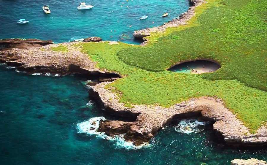 A titkos öböl csak egy hosszú csatornán keresztül érhető el, mely összeköti a Csendes-óceánnal. A turistáknak át kell úszniuk ehhez a távoli édenkerthez, de nincs szükség búvárfelszerelésre ahhoz, hogy megközelíthessék.