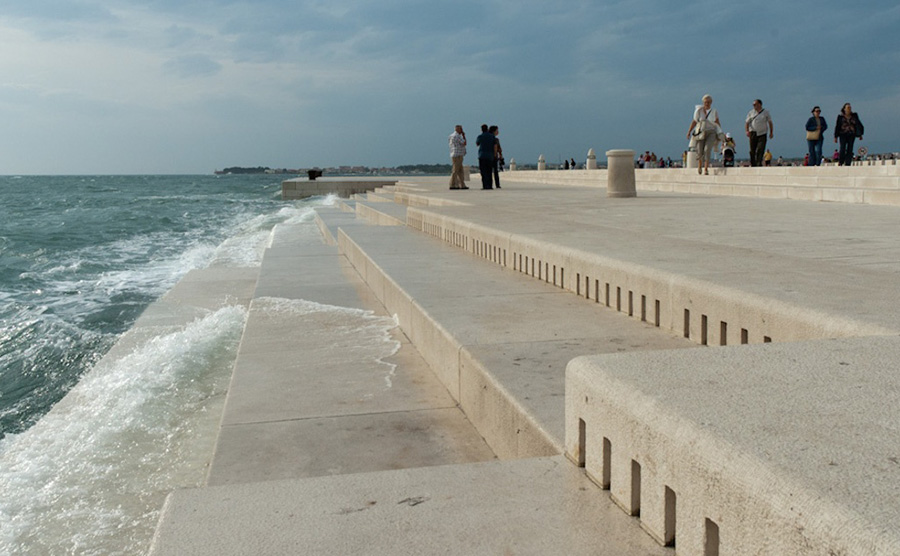 A különleges hangszert Nikola Basic horvát építész készítette a háború sújtotta Zadar város számára, hogy egy kis zenét adjon vissza a térségbe. A természet alapú hangszer 35 orgonasípja a város márvány mólóján folyamatosan zenél, ahogy a hullámok érik a partszakaszt. A kőből faragott sípok hangokká alakítják a hullámokat.