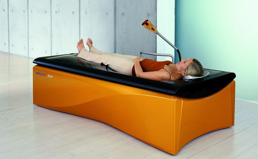 Egy gombnyomás, és elindul a masszázs. Beindulnak a víz alatti fúvókák, és a meleg vízsugarak egyenletesen, és kíméletesen masszírozzák át az egész testet, miközben íves pályán haladnak a tarkótól egészen a talpakig. Már egy tizenöt perces víz feletti masszázs is oldja az izommerevséget, lazítja a kötőszöveteket, felgyorsítja az anyagcserét, és fokozza a vérkeringést. Jó közérzetet biztosít, lazítja az izmokat, enyhíti a hát- és derékfájást, hasznos lehet stressz és kimerültség ellen. További nagy előnye az, hogy nem kell levetkőzni, felöltözni, nem érint minket idegen kéz, nem leszünk olajosak, ezért nem kell masszázs után lezuhanyoznunk, így rengeteg időt takarítunk meg. Orvosi és klinikai szakvélemények támasztják alá jótékony hatását. Visszatérve a két különböző színű ágyra, mint megtudtam ez két külön típust jelent. A világoskék színű ágy neve WELLSYSTEM MEDICAL kiválóan alkalmazható terápiás és gyógyászati kezelés részeként, a narancsszínű ágy, a WELLSYSTEM RELAX wellness célú felhasználásra ajánlott, elsősorban a megelőzésre helyezi a hangsúlyt.